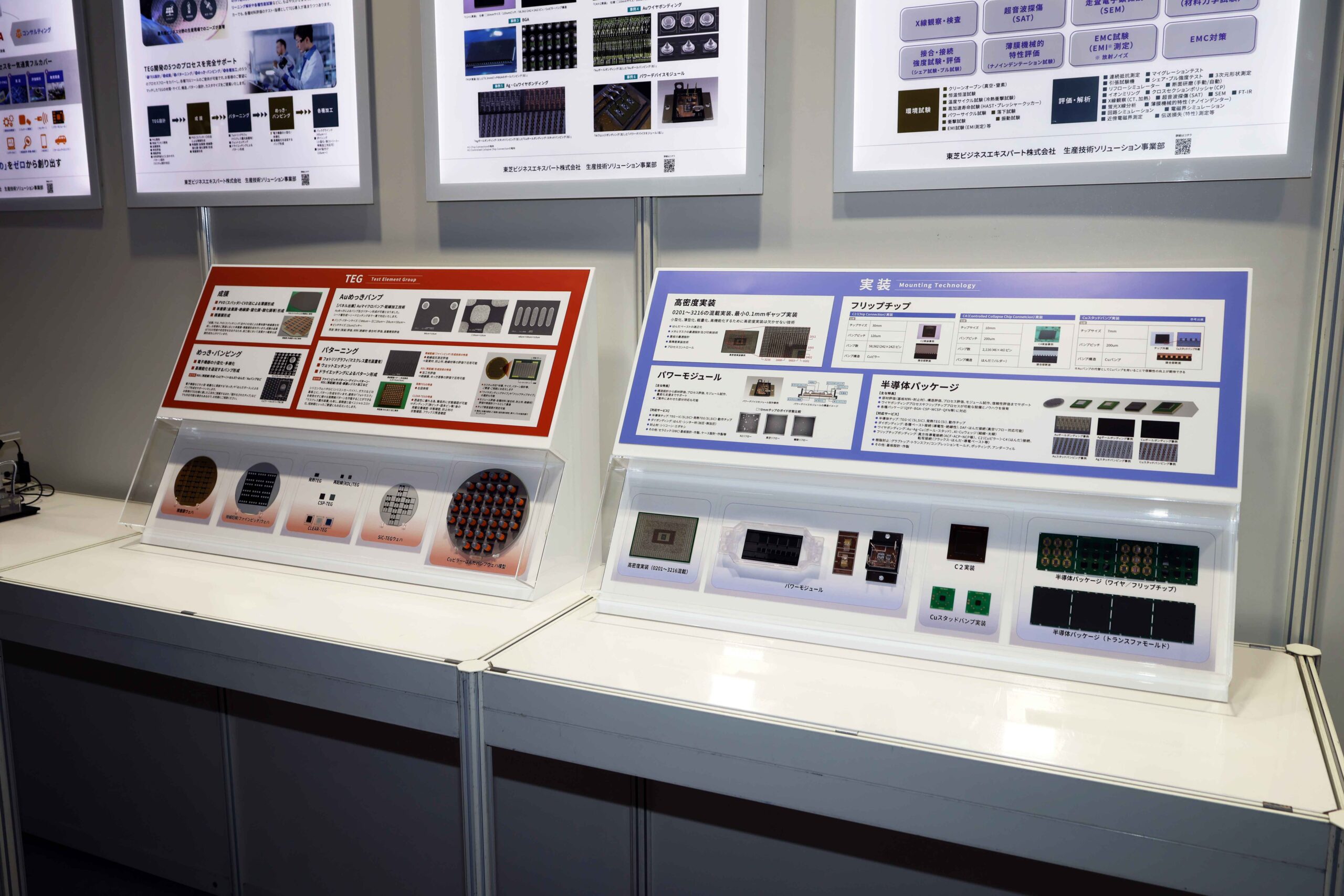 左がターポリン製で中がトロマット製タペストリーで、どちらも折り畳み可能。右は下部に半導体チップの実物を組み込んだPOP