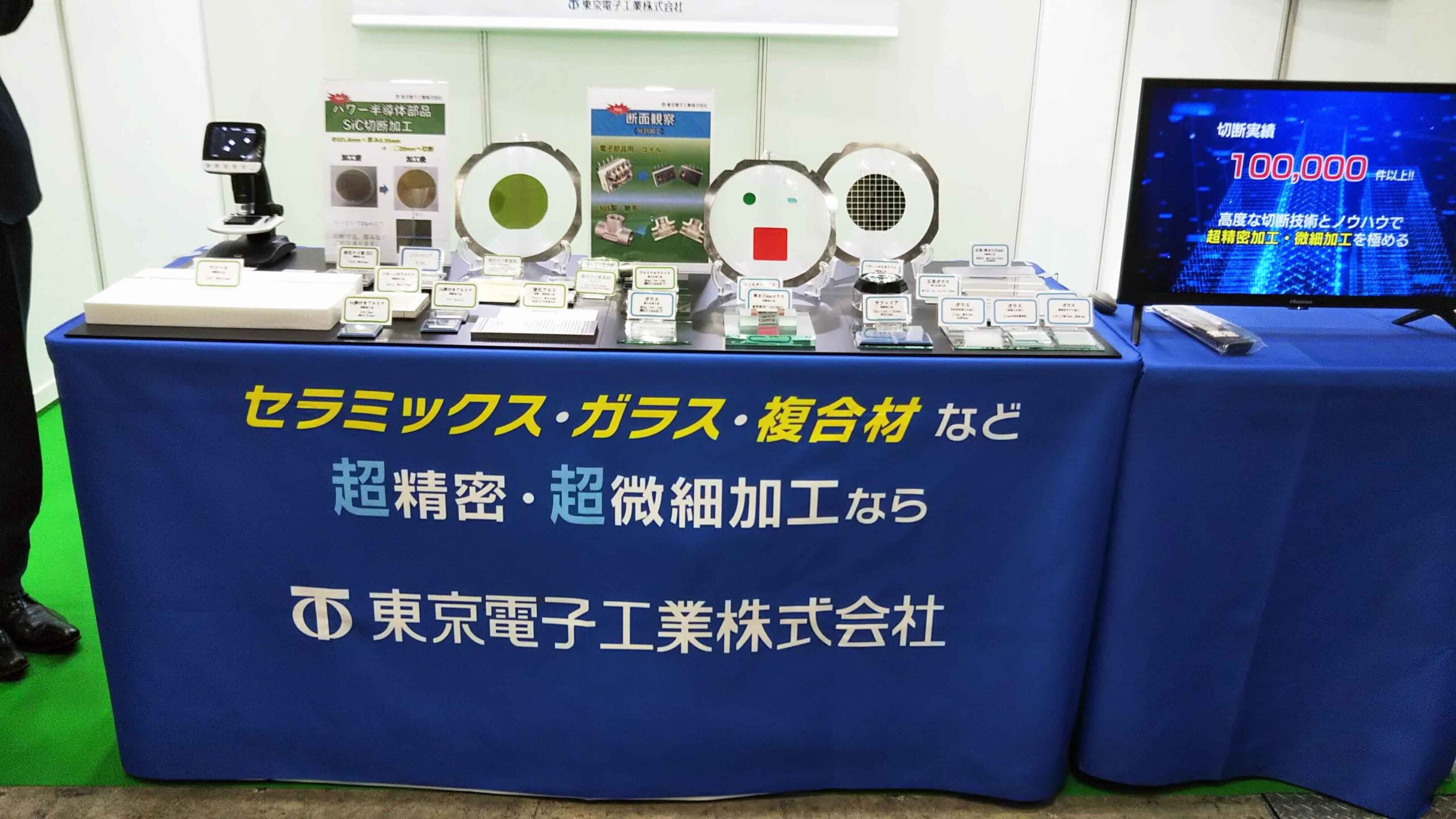 製造業 ブース用テーブルクロス制作事例:基礎小間出展や、小規模の学会、セミナー、海外展示会に最適。来訪者へのおもてなしと展示の格を上げる
