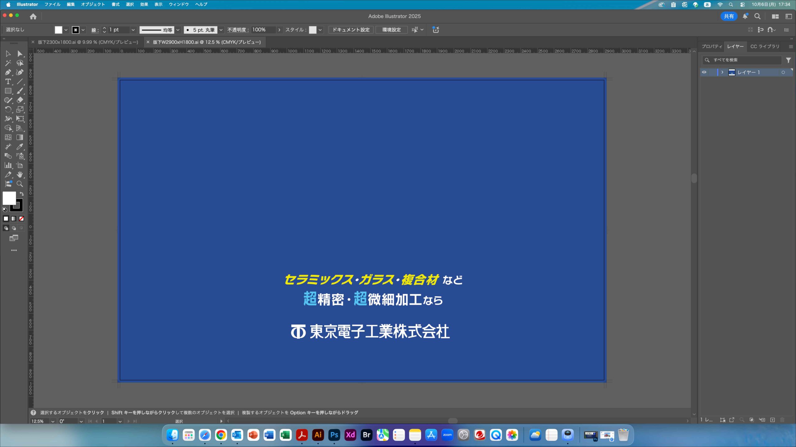 ブース用テーブルクロスは、キャッチコピー+社名のシンプルな構成がベスト。ちょっとした呼び込みサインにもなるので便利(上)。下は制作中の画面だ