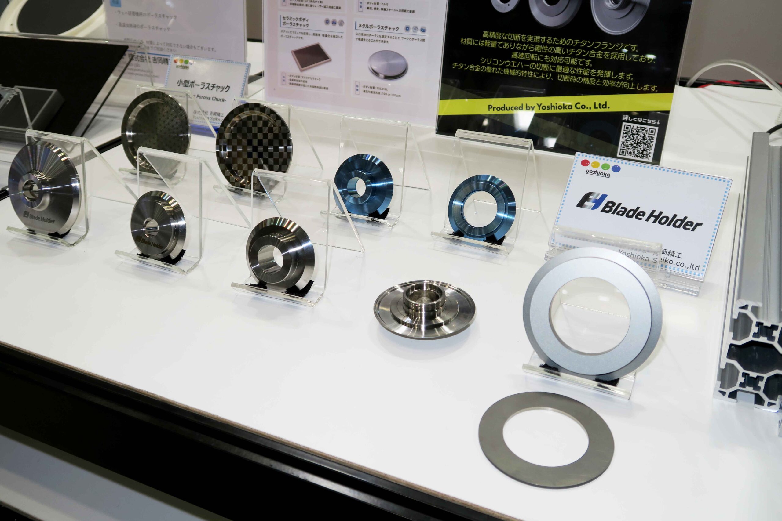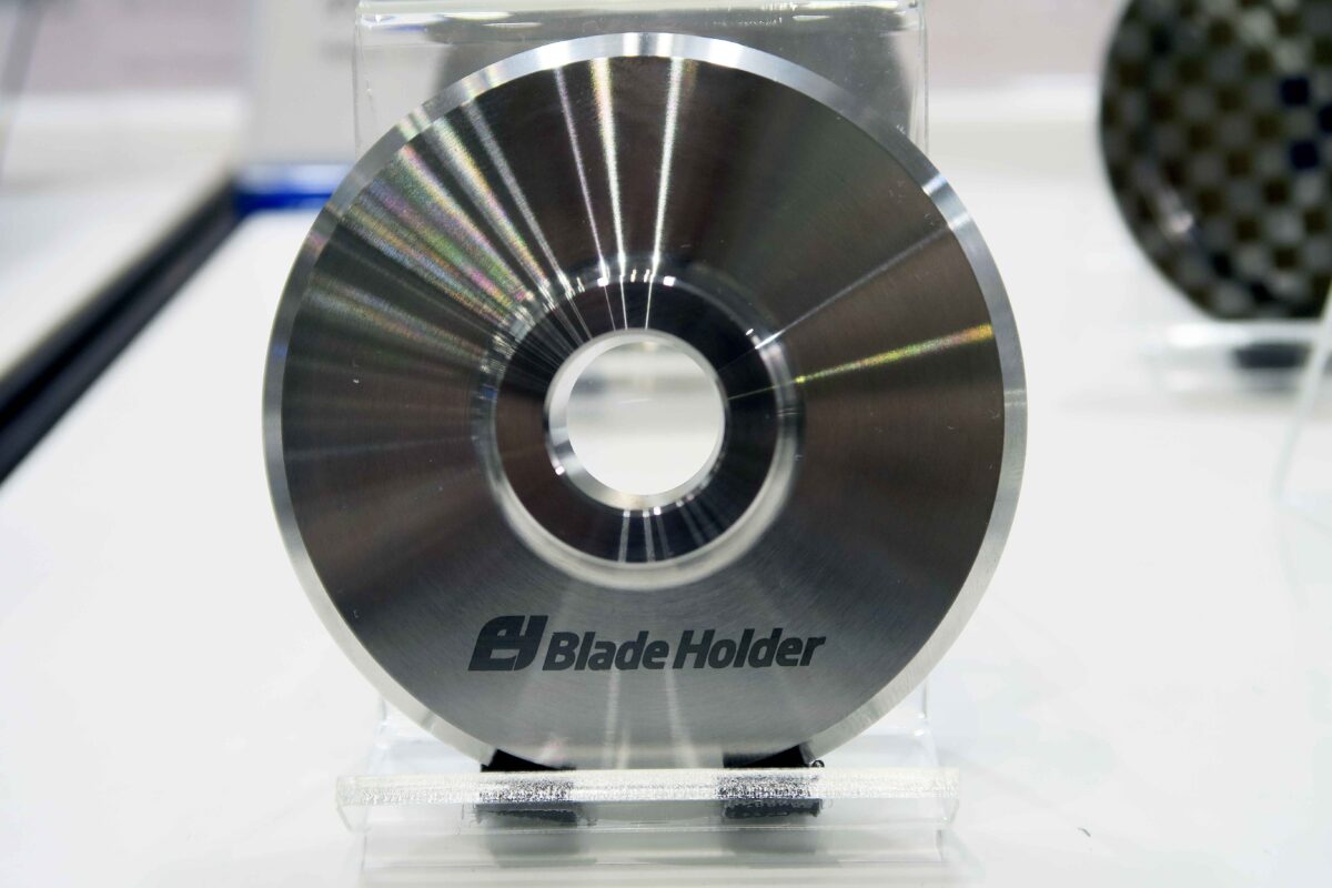 『Blade Holder(ブレードホルダー)』は、同社が企画・開発したダイシングソー用の新型フランジのこと。半導体製造工程においてシリコンウェハー切断のための円形の薄刃ブレードを保持するための治具です。一般的にチタンフランジやハブマウントとも呼ばれ、高速回転するダイシングソーのスピンドルに装着して使用するため、軽さと高い剛性が要求されます。