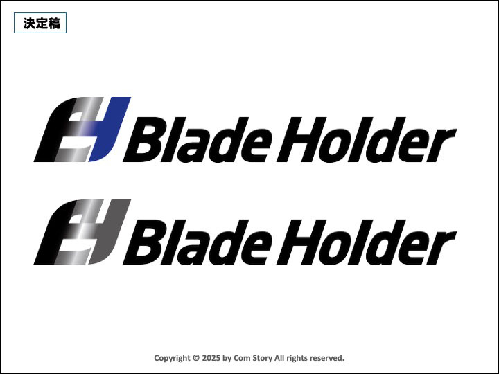 ・「Blade」という言葉の力強さと「Holder」の字面の疾走感を活かすベース書体をチョイス