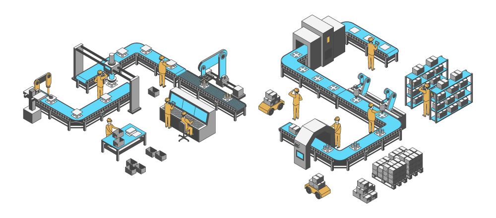 ・工場や倉庫、ロジセンター内部の斜俯瞰図